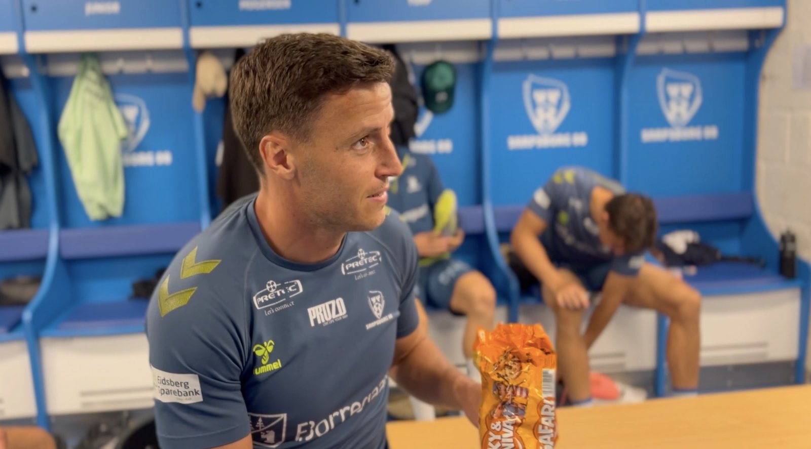 Deo, Safari-kjeks og Sandefjord. Stemningen er god i Sarpsborg 08-garderoben før søndagens kamp på Stadion. Vi har tatt en prat med vår danske formspiller Mikkel Maigaard. Video