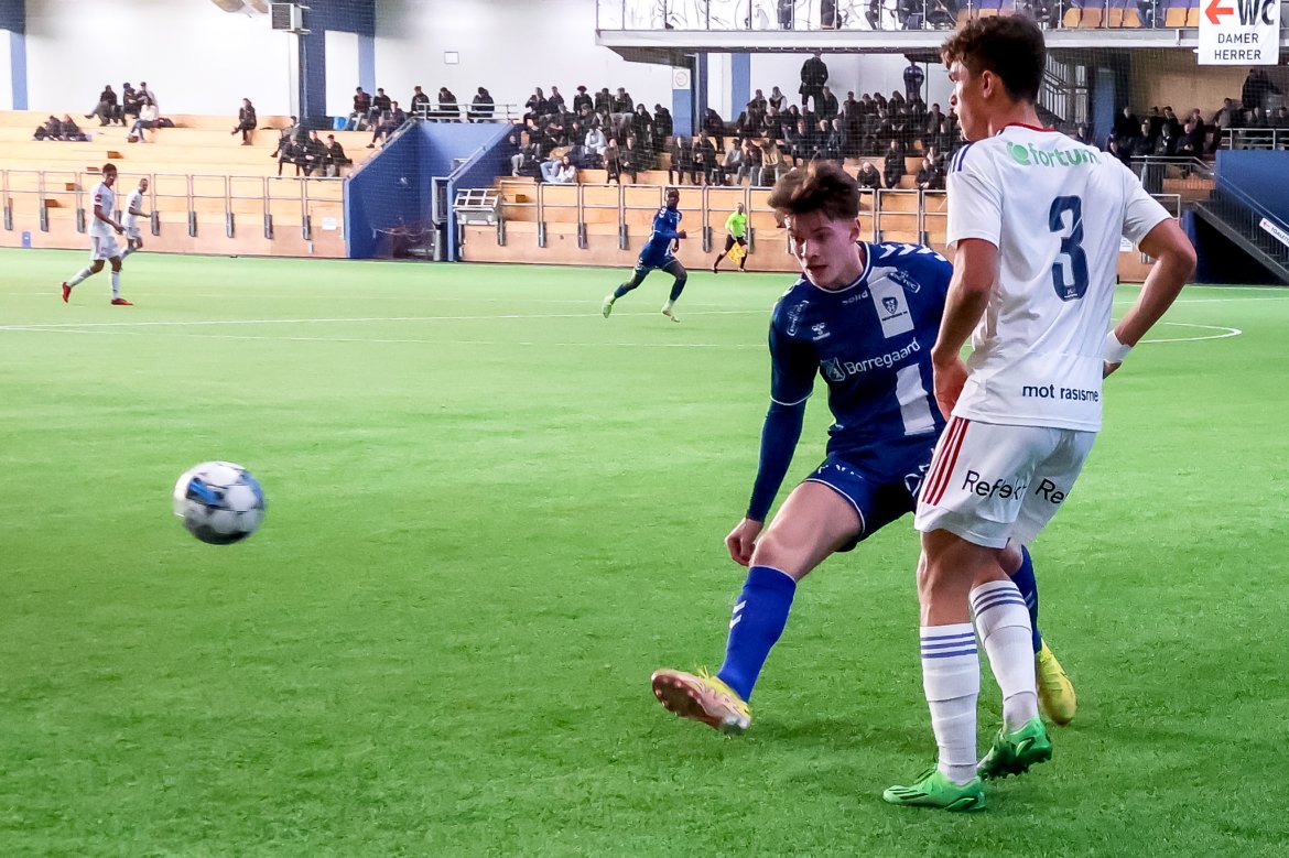 Victor Torp stelte seg opp, avsluttet midt mot mål. Der lå Jacob Storevik og reddet forsøket greit.