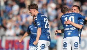 Festfotball i den første omgangen på Stadion holdt for Sarpsborg 08. Scoringer av Maigaard og Andersen sikret tre poeng mot formlaget fra Bergen.