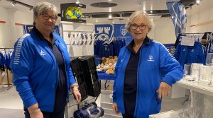 Inger Hansen og Ellen Marie Wernersen Bjørnsen er klar for å ta i mot handleglade 08-supportere.