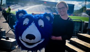 I Fanzone er maskoten den kanskje aller mest populære. Til eliteseriehymnen følger den spillerne ut på banen. Inne i Åtto-drakta tusler Frida Andersen (26).